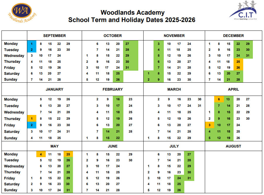 Please click the buttons for downloadable versions of academic year term dates: